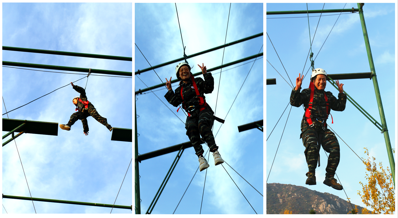 卓越圈的游戏规则是在保证安全的情况下,通过28人次用时最短的队伍获胜,这个游戏考验没有太多技巧,就是不断的练习。