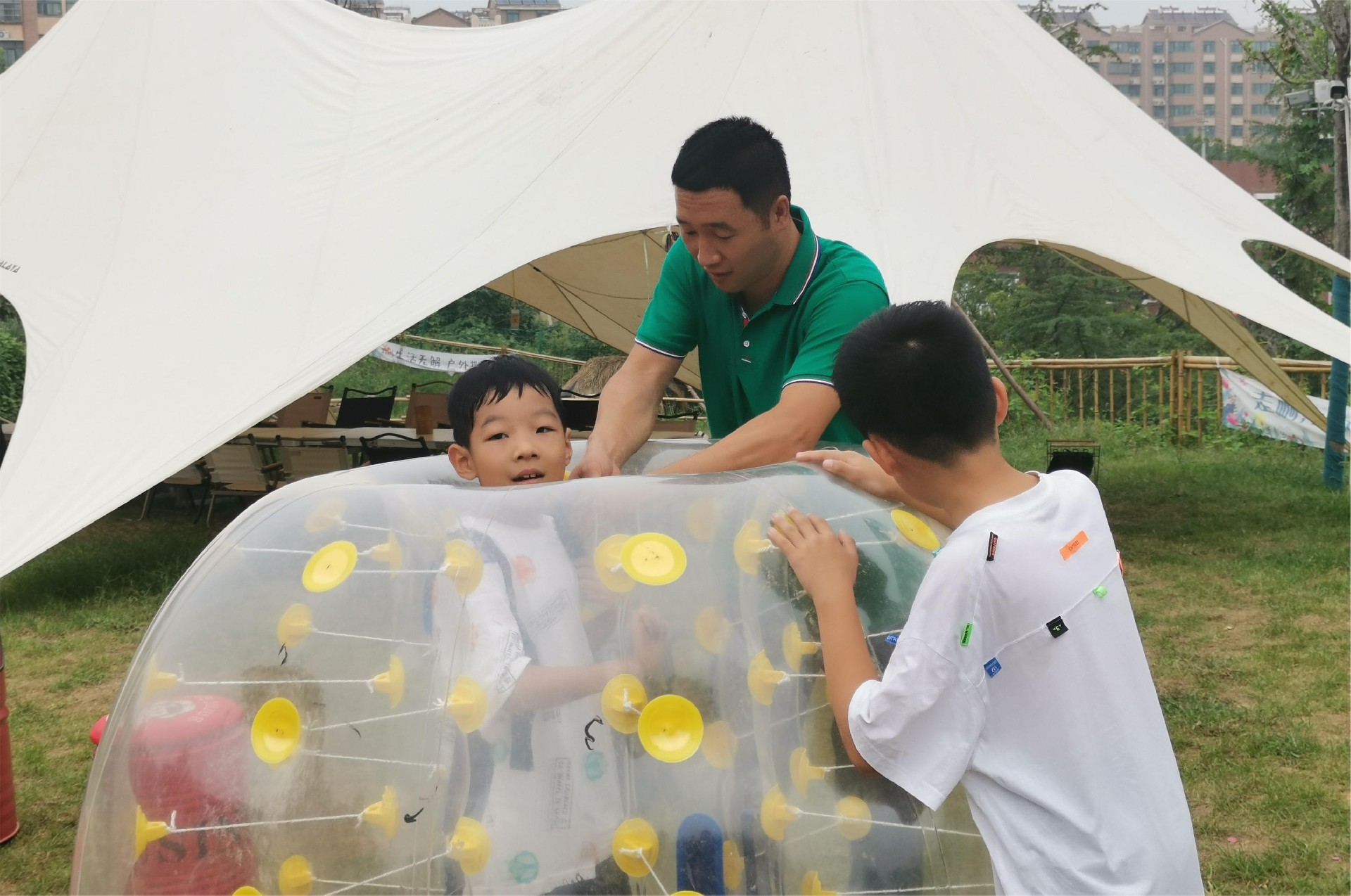 家长带着孩子们穿梭于不同的活动场地,碰碰球、水边钓鱼、彩虹滑道等各种童玩游戏,现场气氛十分活跃,无论是孩子们还是家长们,无不欢欣鼓舞,热血沸腾。