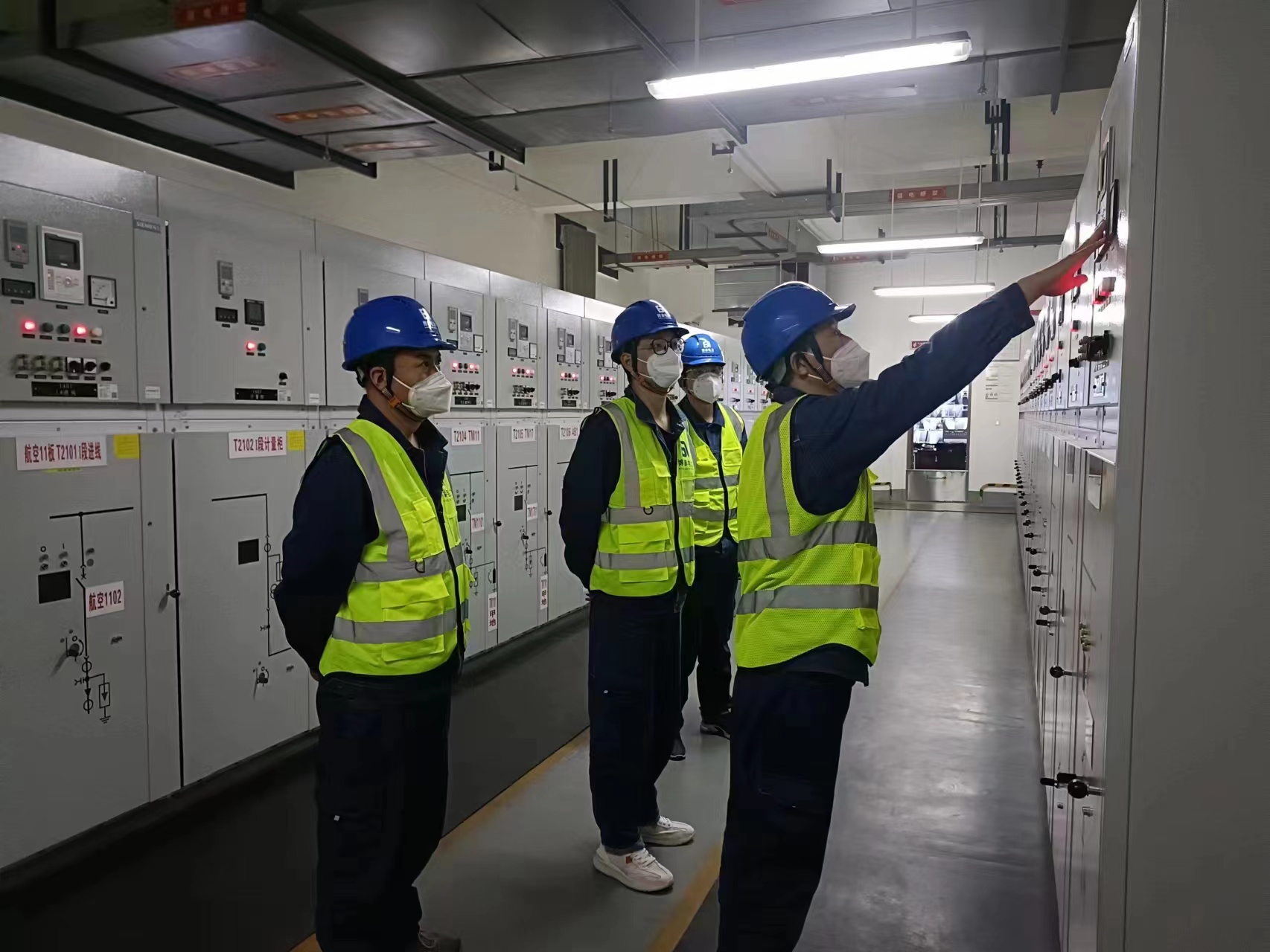 为了保证新郑机场2 号航站楼及 GTC 换乘中心高压系统的正常运行维护,在严格落实疫情防控各项要求的同时,采用点对点工作方式,合理安排人员,优化值班模式,执行24小时不间断值班制度,加强对系统、设备安全巡查, 加强设备的维护消缺力度,对重点区域、重点设备进行加强巡视,确保配电室用电设备的正常运行。