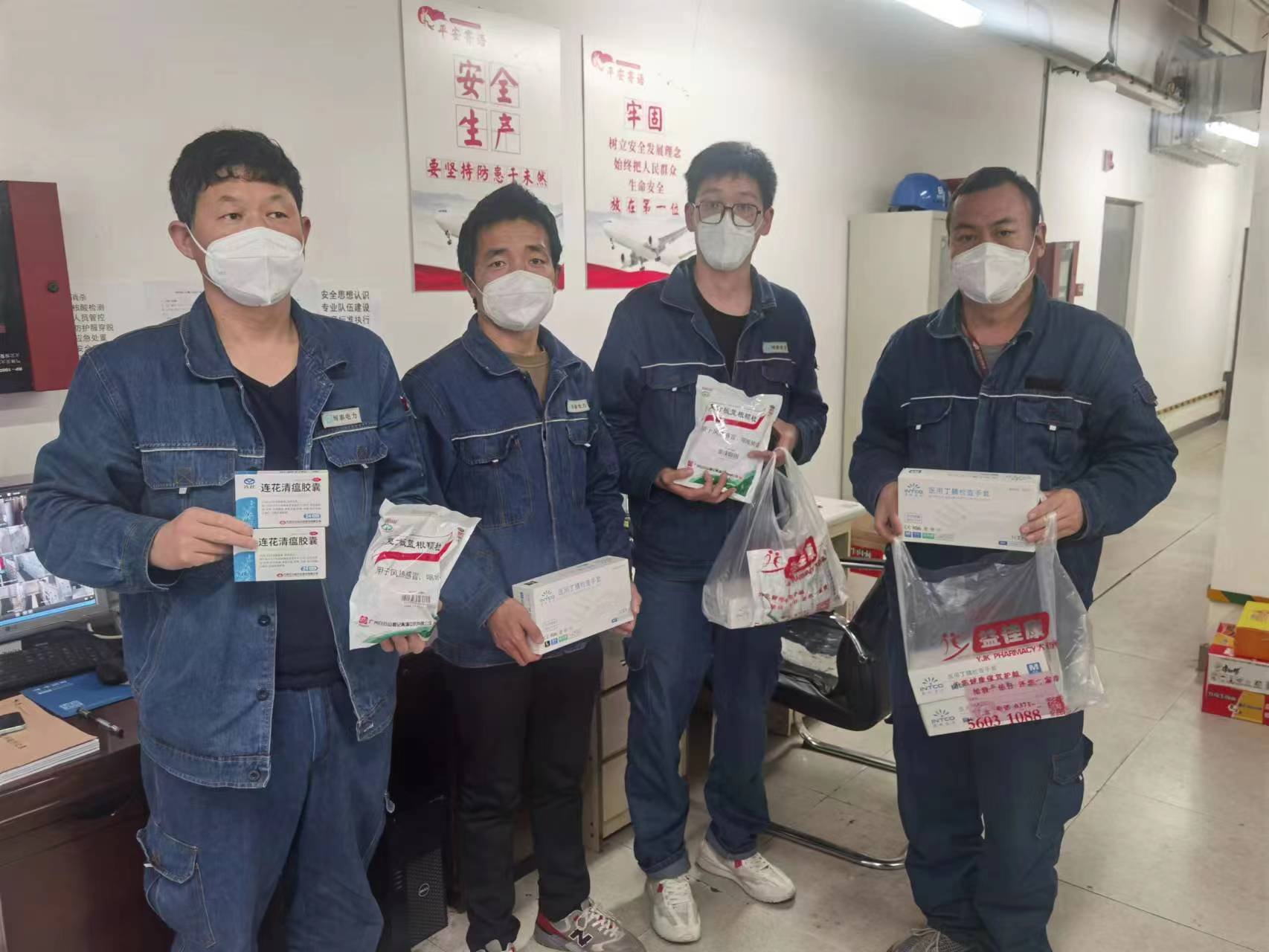 在严格遵守防疫政策的情况下,运维工作也面临着不小的困难,活动范围小,所有商场、药店、食堂等营业场所全部停止营业,现场人员面临无法采购食品,防疫用品等问题。公司领导对此非常重视,采购了一大批新鲜水果、方便食品、面包、N95口罩、消毒液、日常药品等防疫物资送到项目现场,定期为一线同事送去温暖和关心,齐心协力,共战疫情。