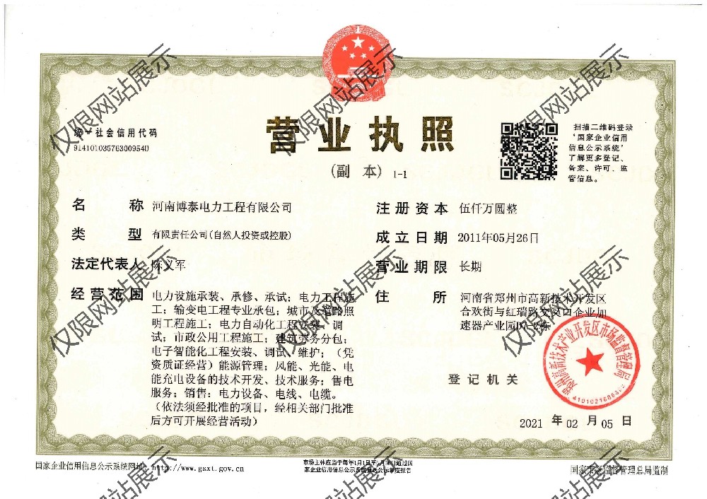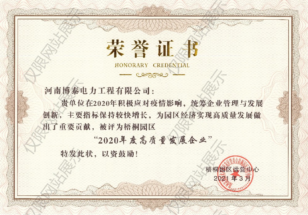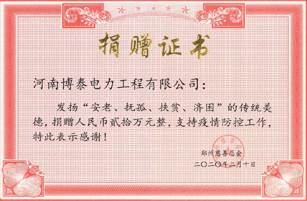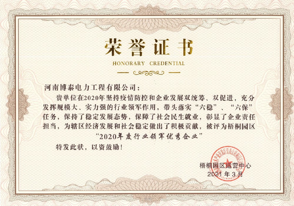 Certificate of Honor for Exemplary Organization in Electric Power Safety Production