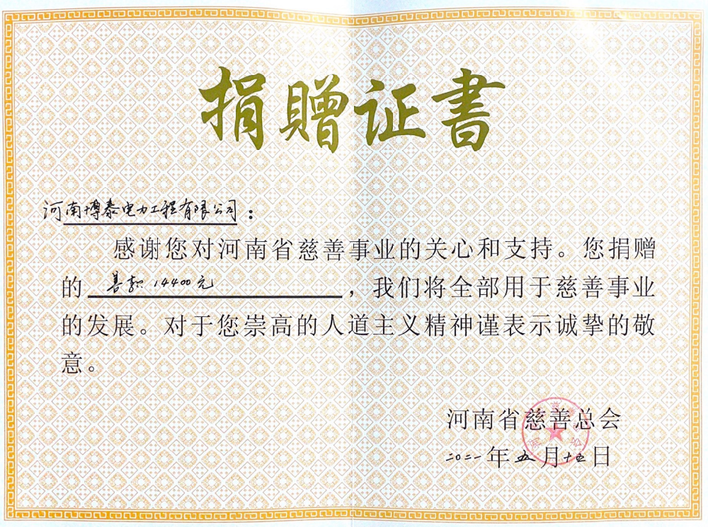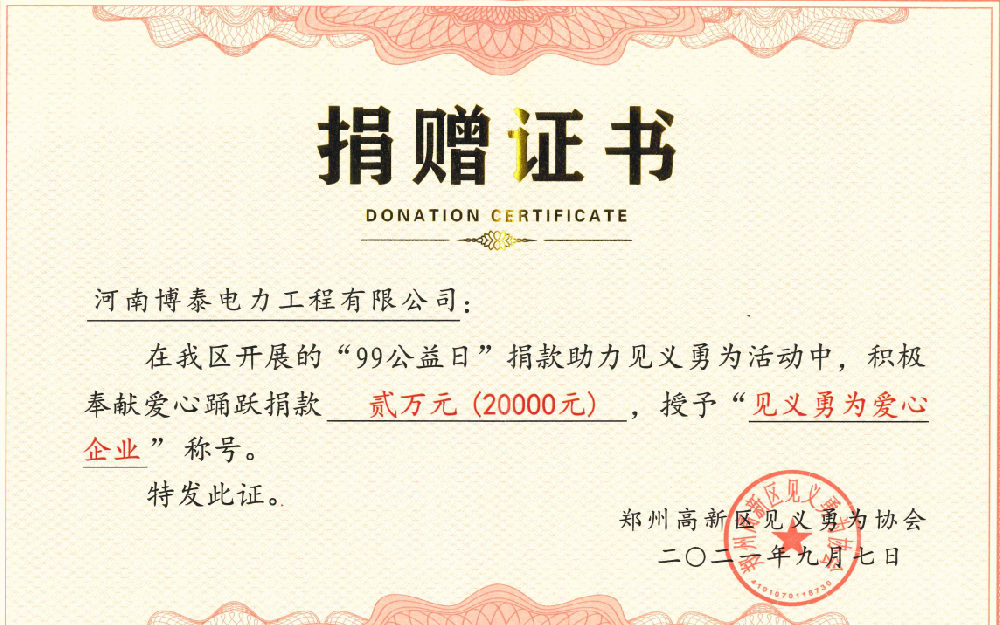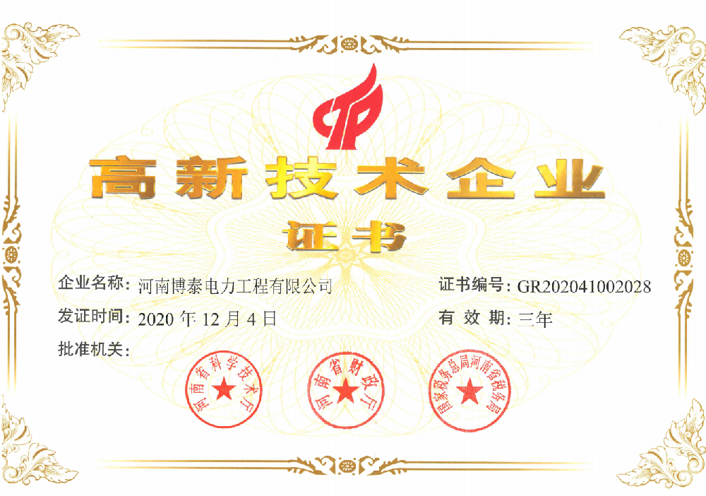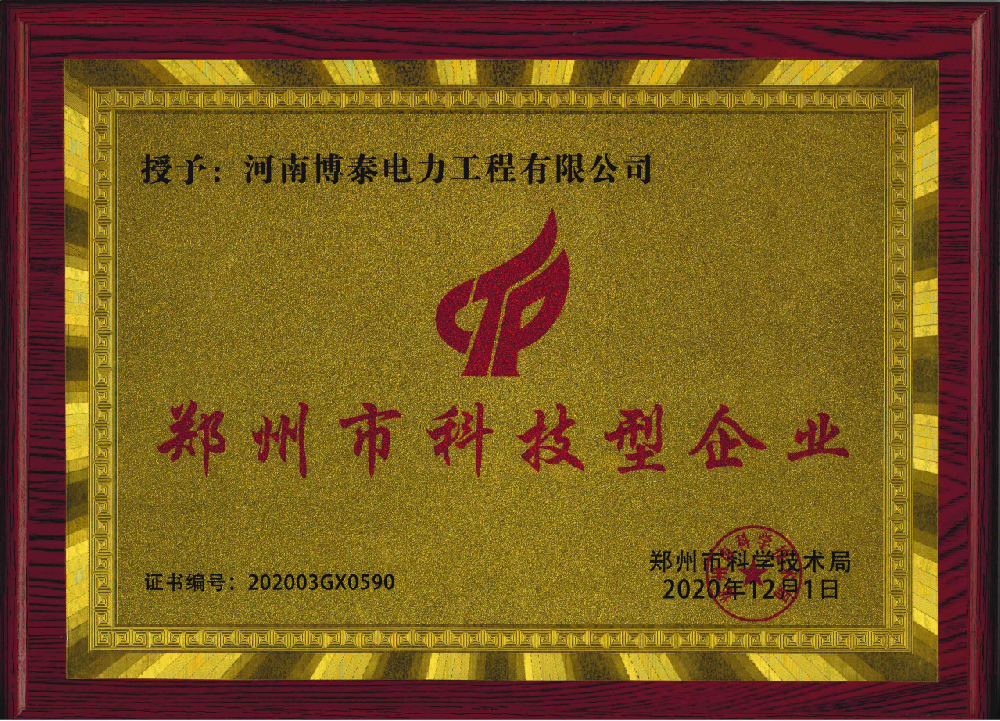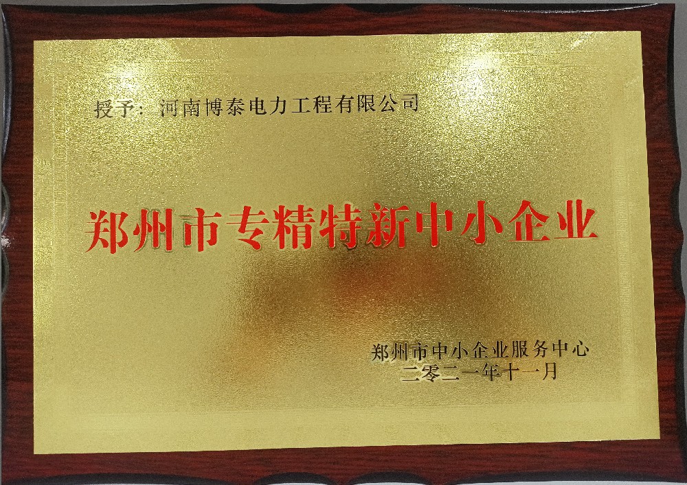 Certificate of Specialized, Fine, Unique, and Innovative Small and Medium-sized Enterprises in Zhengzhou City