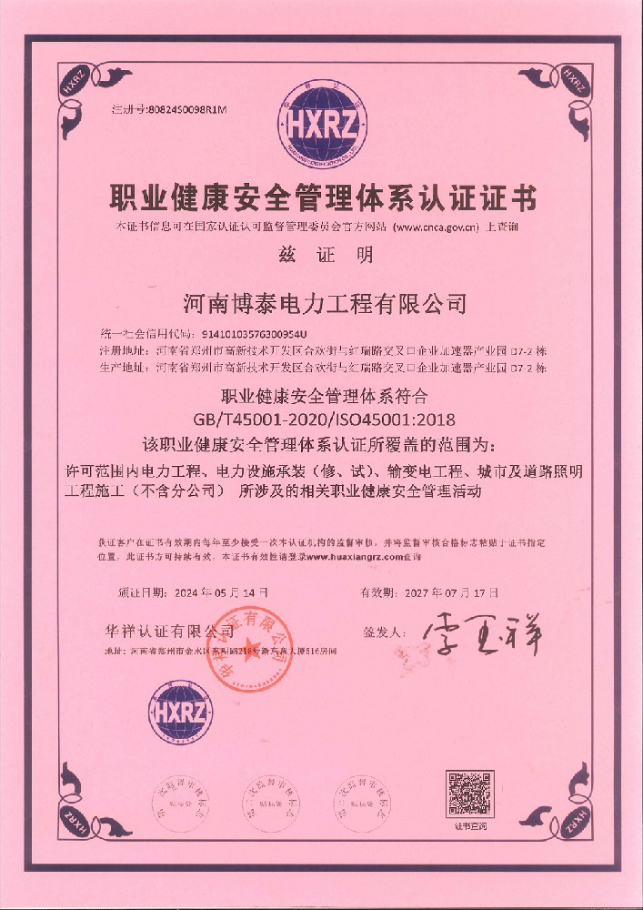 Postion: Home>>ABOUT>>Qualifications and Honors > Certification of Occupational Health and Safety Management System