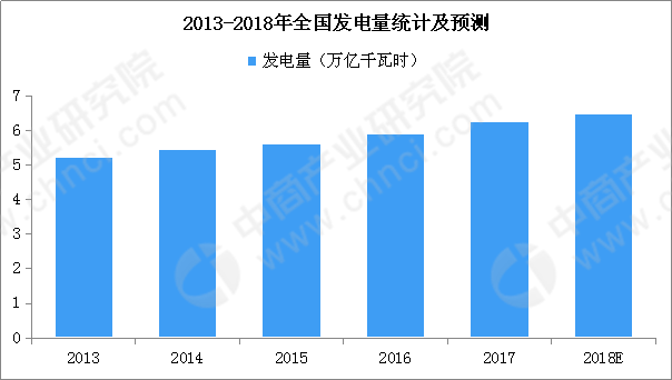 电力是以电能作为动力的能源。电力行业关系着国计民生的基础性支柱产业,与国民经济发展息息相关。当前我国经济持续稳定发展,工业化进程稳步推进,对电力的需求必然日益增长。近年来,我国发电量保持增长,从2012年的约4.8万亿千瓦时到2017年的约6.3万亿千瓦时,我国发电量实现了30%的增长。其中,2017年全国发电量6.3万亿千瓦时,比上年增长5.9%。据最新数据显示,今年以来发电量约为6.1万亿千瓦时。其中,11月发电量5543.0亿千瓦时,同比增长3.6%,增速比上月回落1.2个百分点;日均发电184.8亿千瓦时,环比增加12.9亿千瓦时。