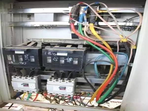 1、配电箱内主线混乱,有并联现象 2、分闸一闸多接 3、左侧接线不合理,不符合接线要求 4、接地线颜色不符合用地按要求,非PE线